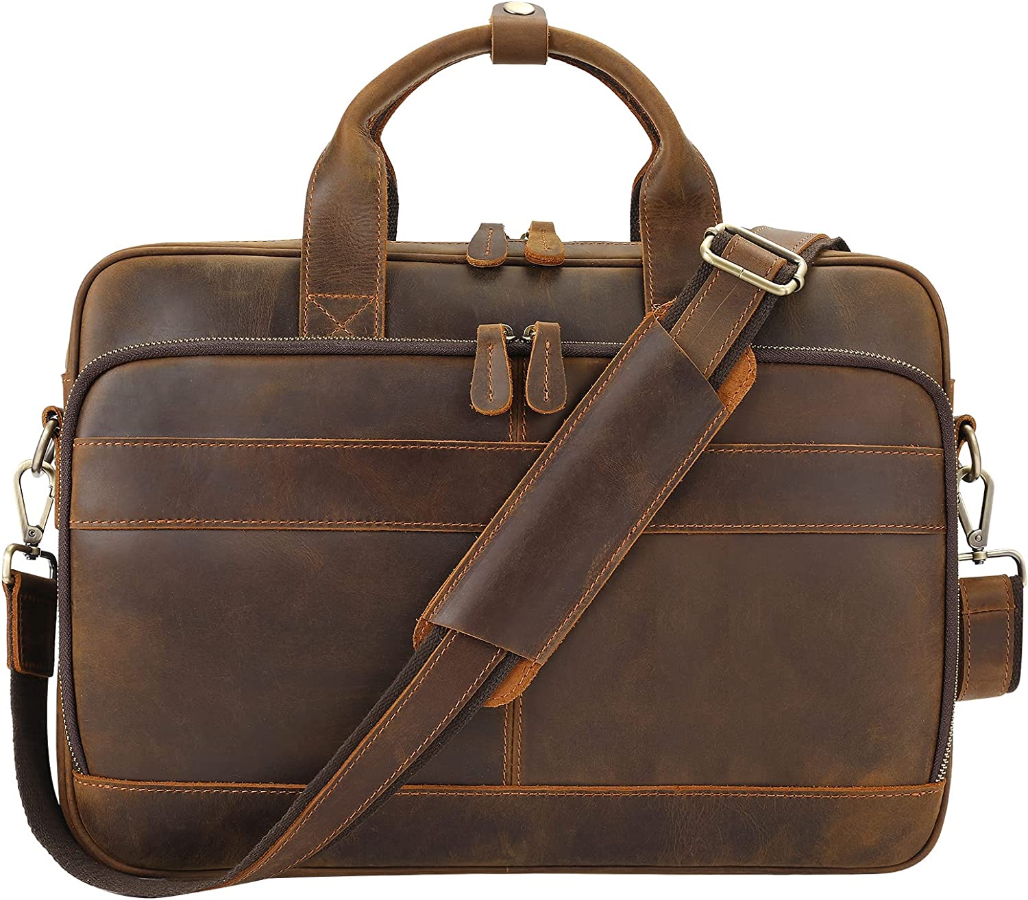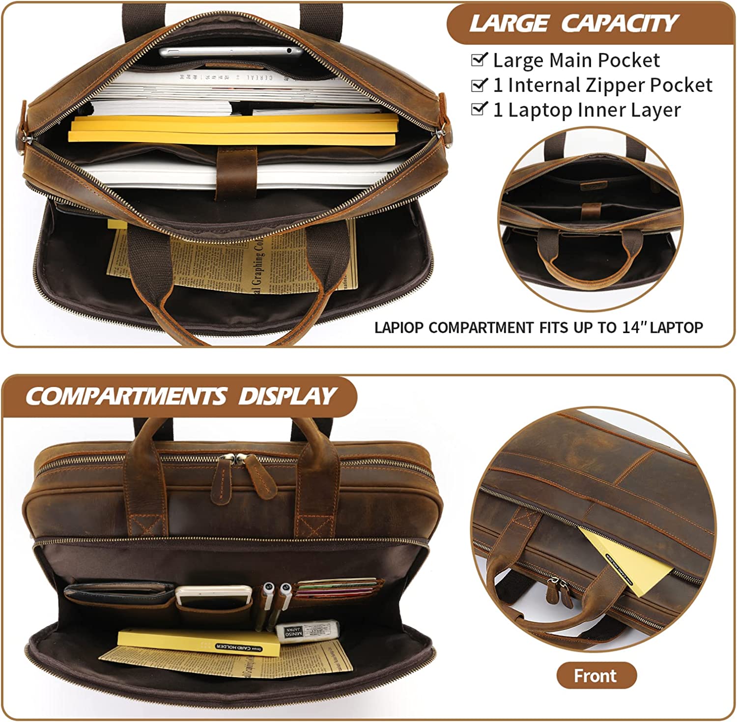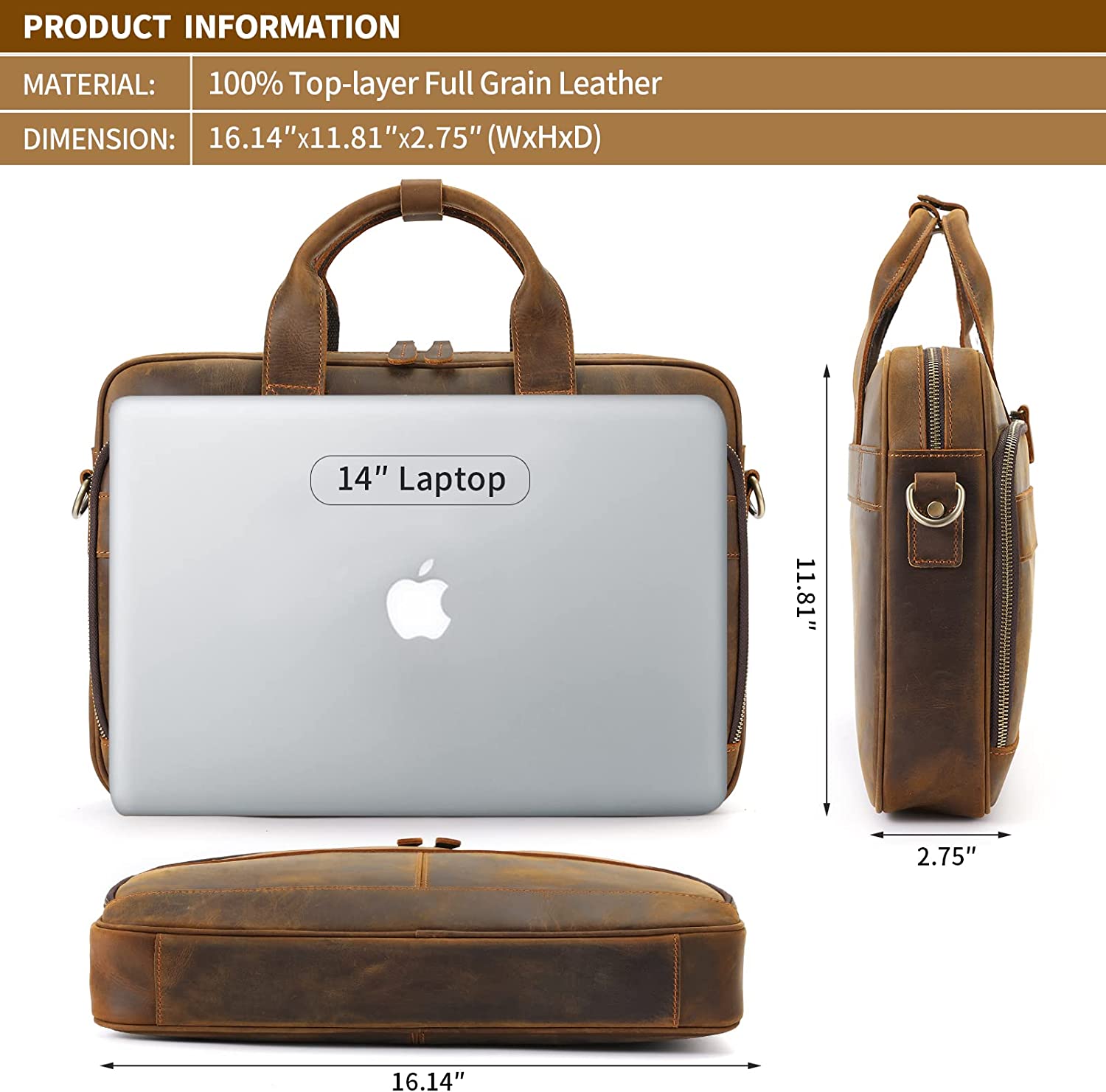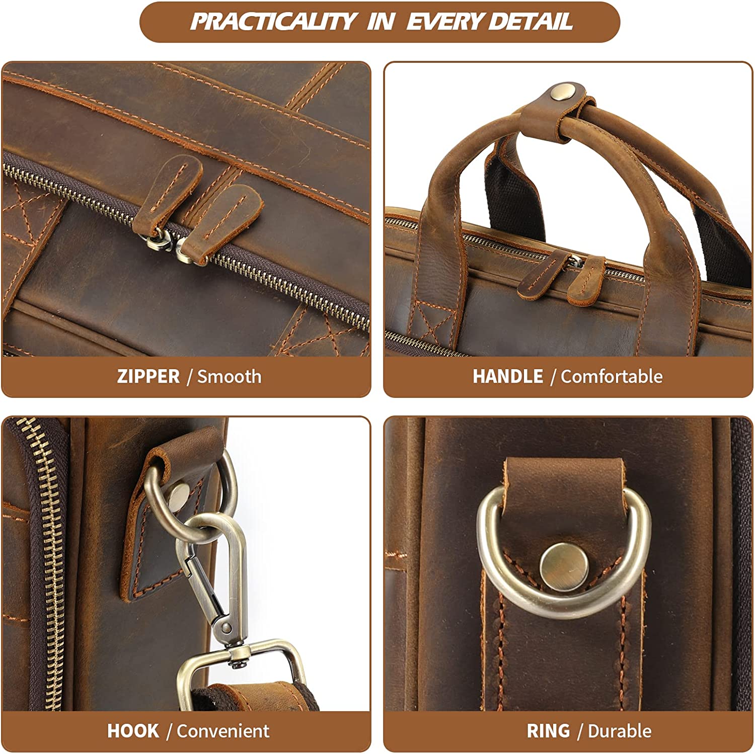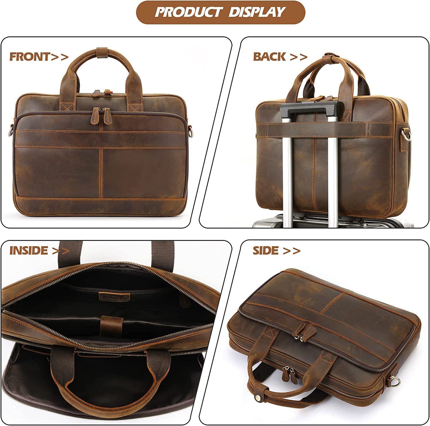 กระเป๋าเอกสารหนัง Jack&Chris สำหรับผู้ชาย, กระเป๋า Messenger แล็ปท็อปเดินทางเพื่อธุรกิจ