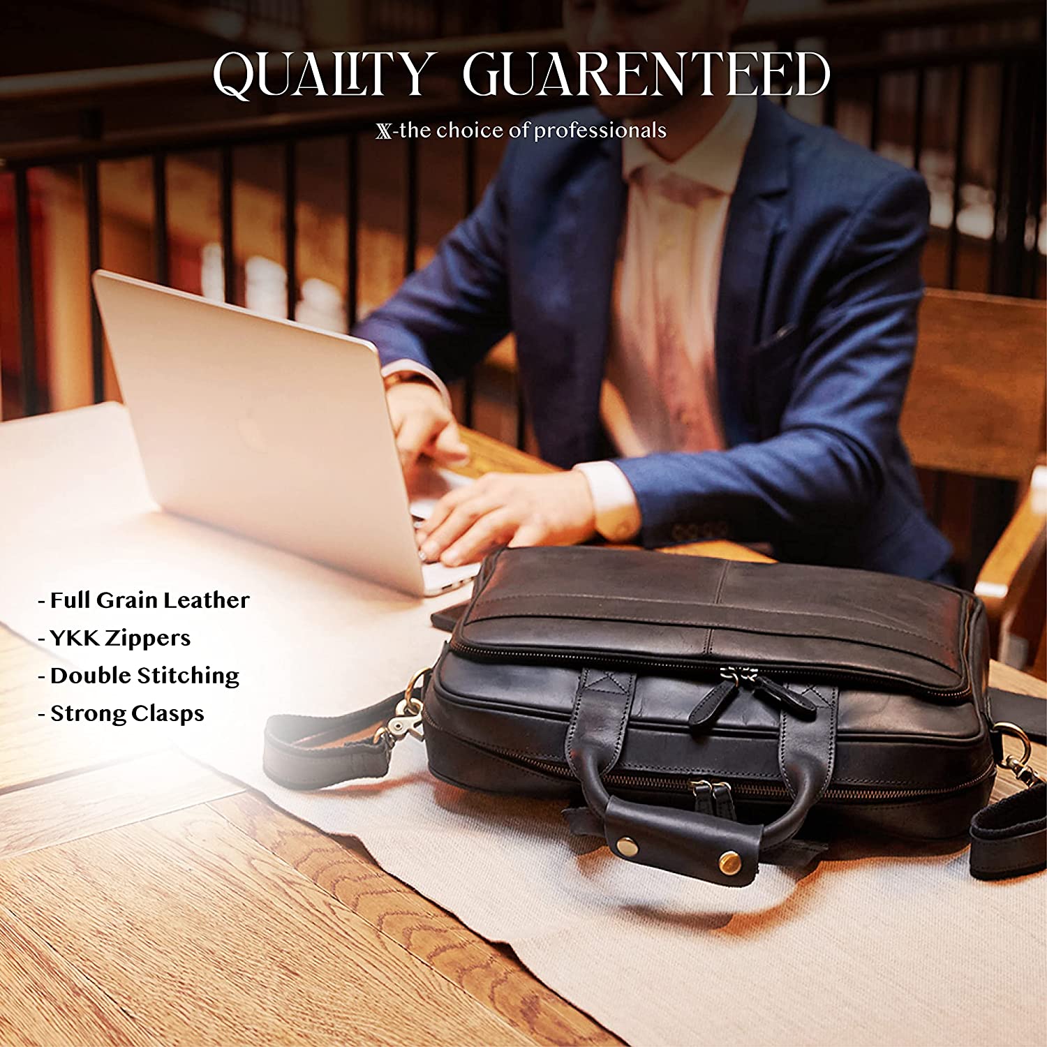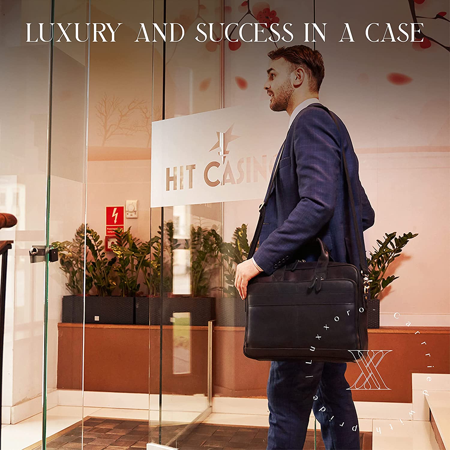 กระเป๋าเอกสาร Luxorro Full Grain หนังสำหรับผู้ชาย, กระเป๋าแล็ปท็อปหนังทำด้วยมือสำหรับผู้ชาย, กระเป๋าหนังสำหรับผู้ชายของเรามาในกล่องของขวัญที่สวยงาม, ของขวัญคริสต์มาสที่สมบูรณ์แบบ สำหรับผู้ชาย, สีน้ำตาล, พอดีกับแล็ปท็อป 15.6