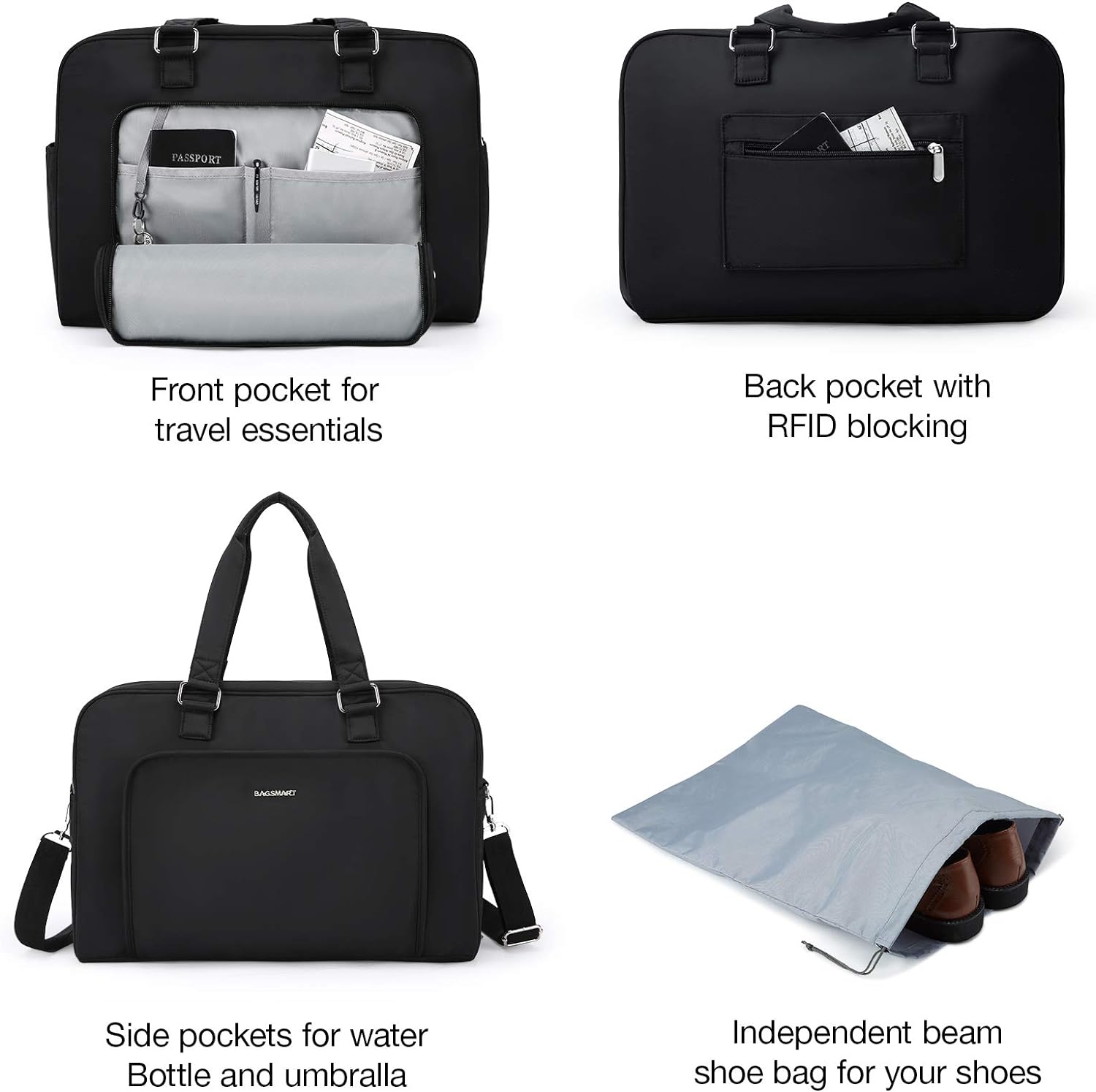 กระเป๋า Weekender สำหรับผู้หญิง BAGSMART Travel Duffle กระเป๋าใส่ข้ามคืน กระเป๋าใส่ของส่วน ตัวพร้อมกระเป๋ารองเท้าสำหรับสิ่งจำเป็นสำหรับการเดินทาง (สีชมพู, 27 ลิตร)