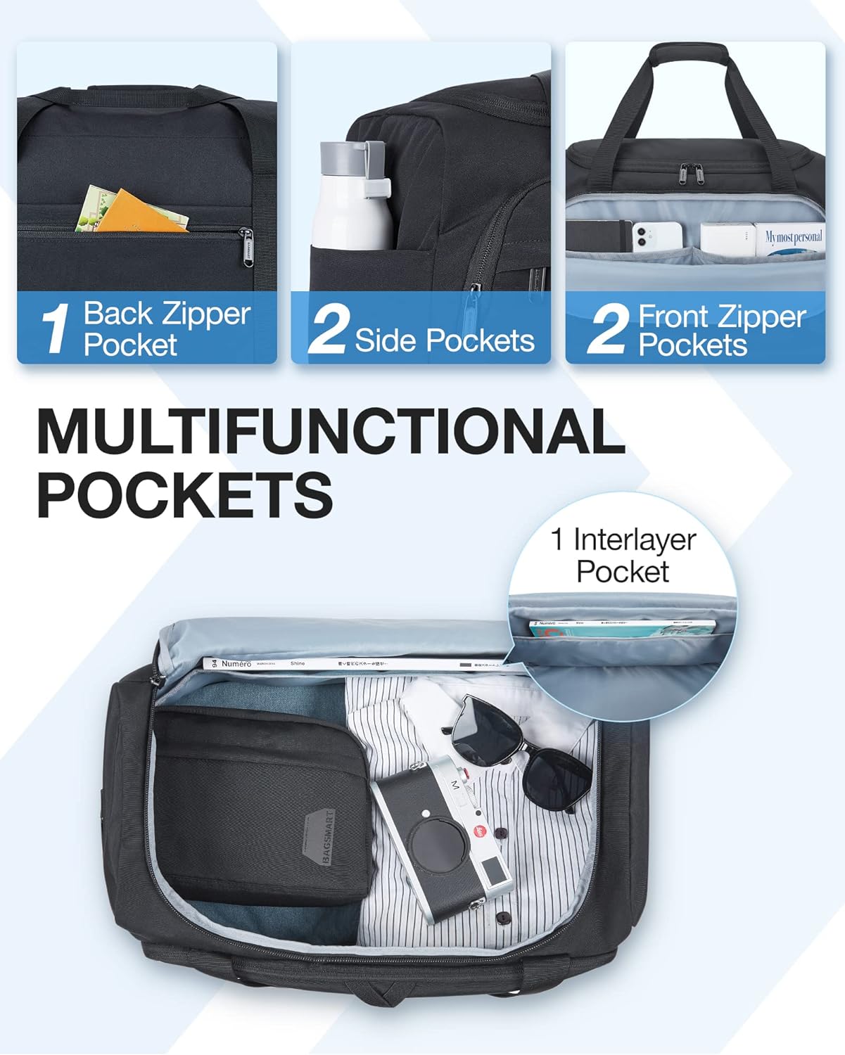 กระเป๋าเดินทางแบบถือขึ้นเครื่อง BAGSMART กระเป๋าเดินทางแบบถือขึ้นเครื่องพร้อมกระเป๋าเครื่อง สําอาง กระเป๋าใส่รองเท้า (สีดำา 38 ลิตร