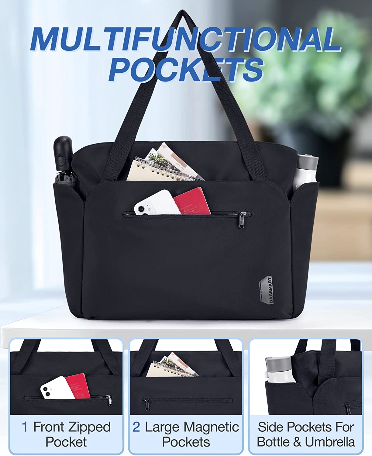 BAGSMART กระเป๋าสตางค์กระเป๋าถุงมือขนาดใหญ่สำหรับผู้หญิงกระเป๋าทำงานพร้อมซิป กระเป๋าสะ พายแล็ปท็อปสีดำพร้อมกระเป๋า