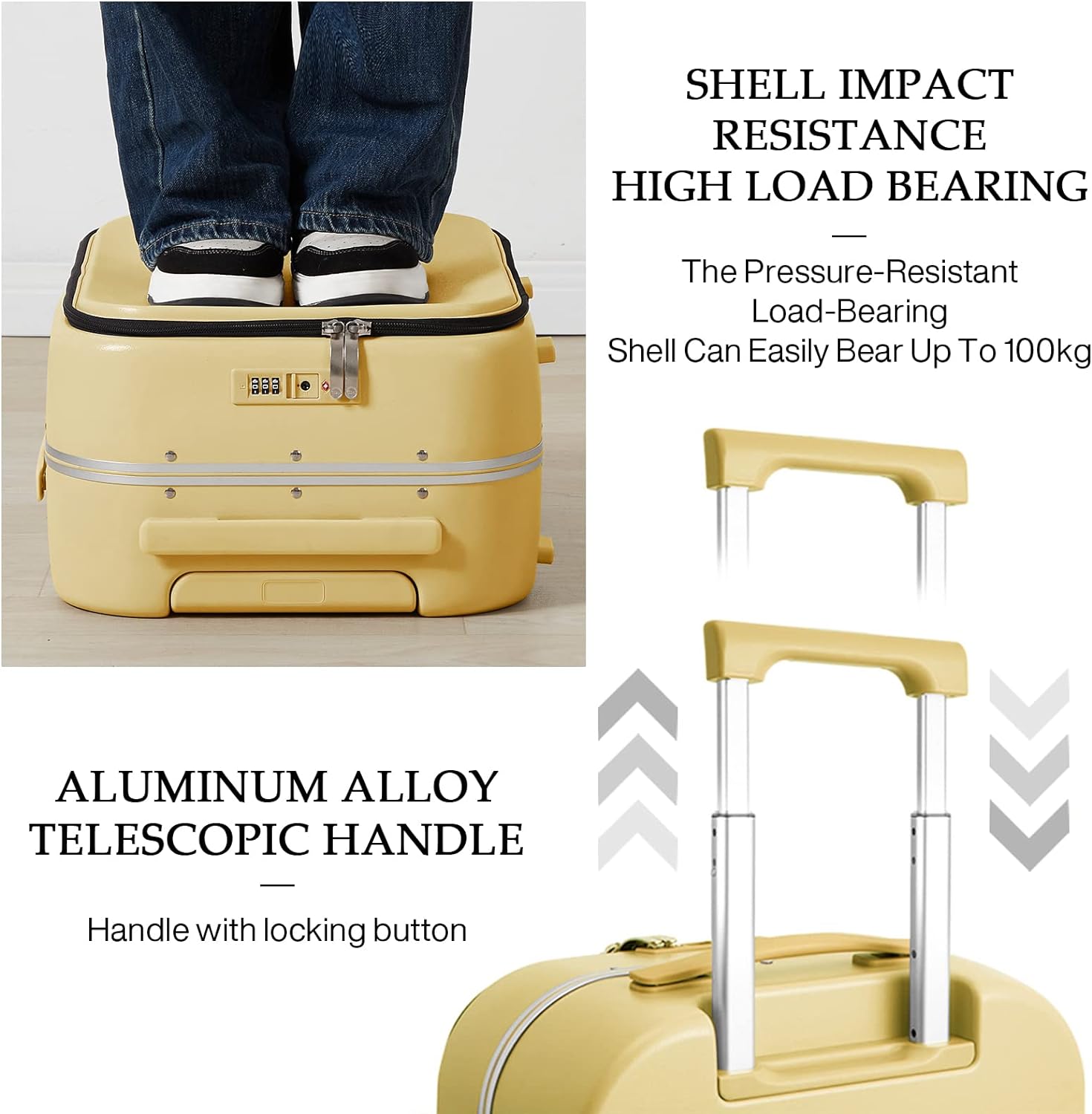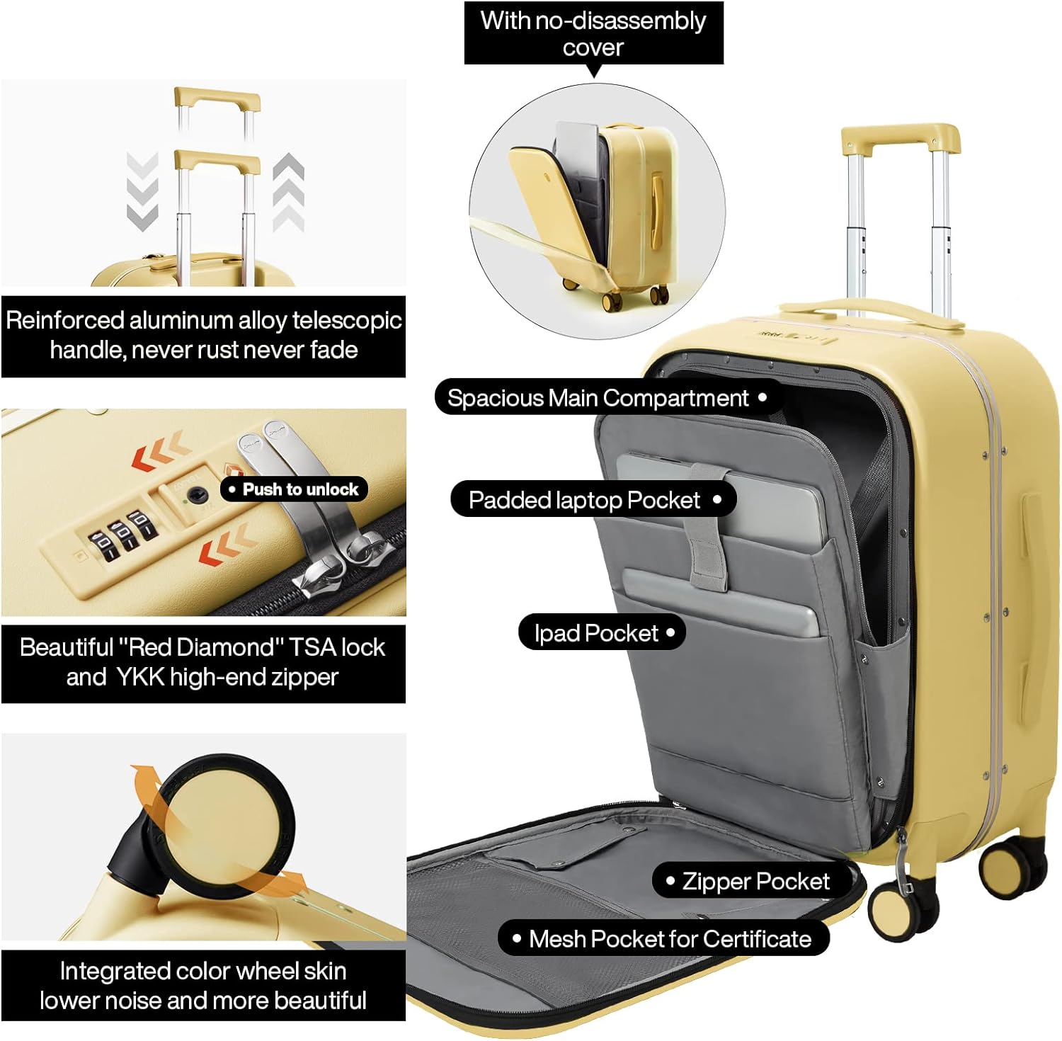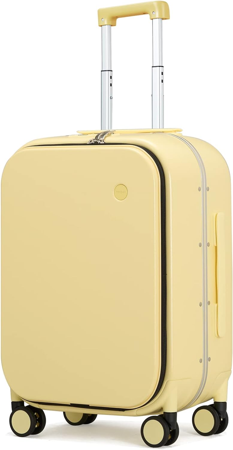 กระเป๋าเดินทางแบบถือขึ้นเครื่อง ขนาด 20 นิ้ว พร้อมช่องใส่โน้ตบุ๊คด้านหน้า กระเป๋าเดินทางแบบมีล้อโครงอะลูมิเนียม พีซี ฮาร์ดไซด์ พร้อมล้อหมุนและที่ล็อก TSA และฝาปิด - สีเขียวอะโวคาโด
