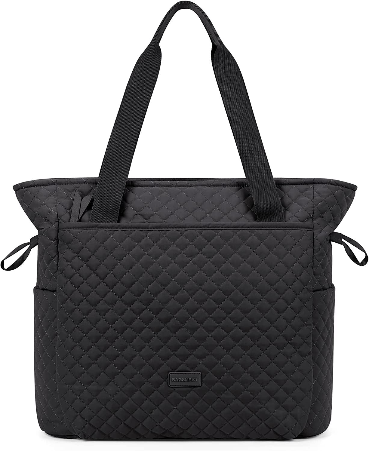 BAGSMART กระเป๋าผ้าควิลต์, กระเป๋าถือด้านบนสำหรับผู้หญิง, กระเป๋าสะพายไหล่, กระเป๋าโฮโบ ขนาดใหญ่ 25 ลิตรสำหรับทำงาน, โรงเรียน, ท่องเที่ยว